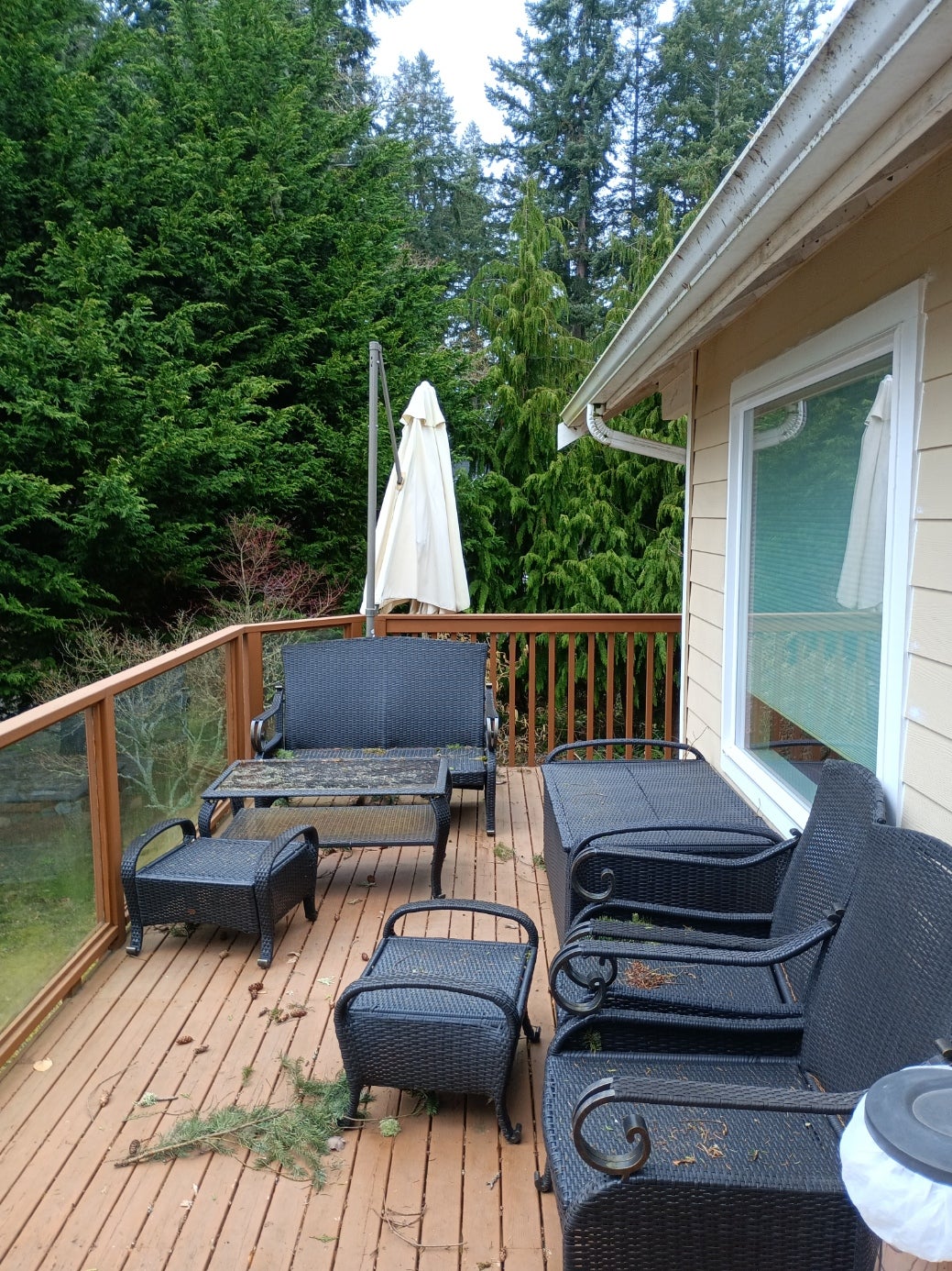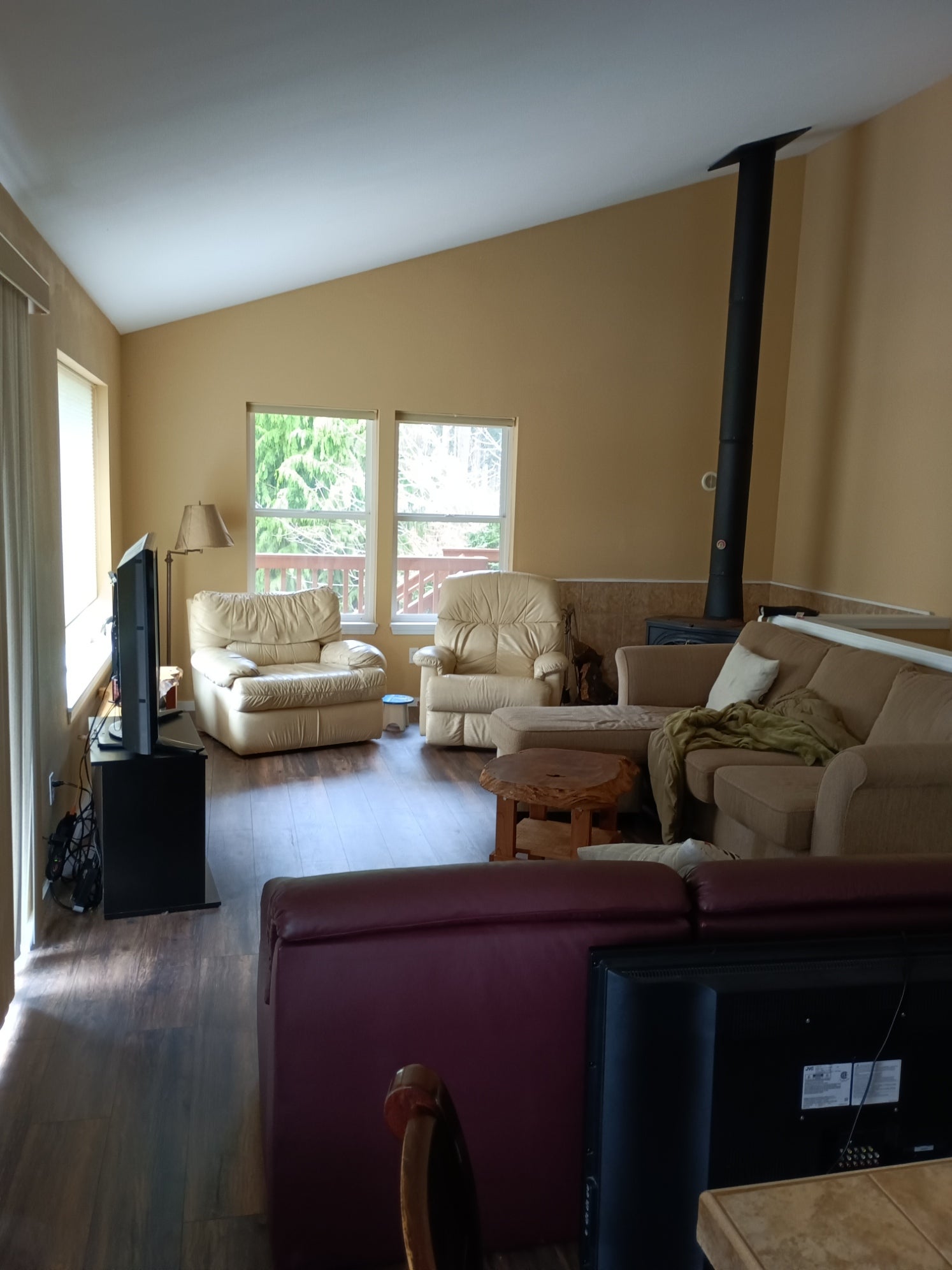 Stunning view home on South facing lot. Upper deck wraps around two sides. Views from most rooms. Wood stove in living room. Kitchen has large counters and cabinet space. Tiled main bath with separate shower.Quality furnishings throughout! Located in private island community five miles West of Everett. Ready to move in to, most furnishings stay.